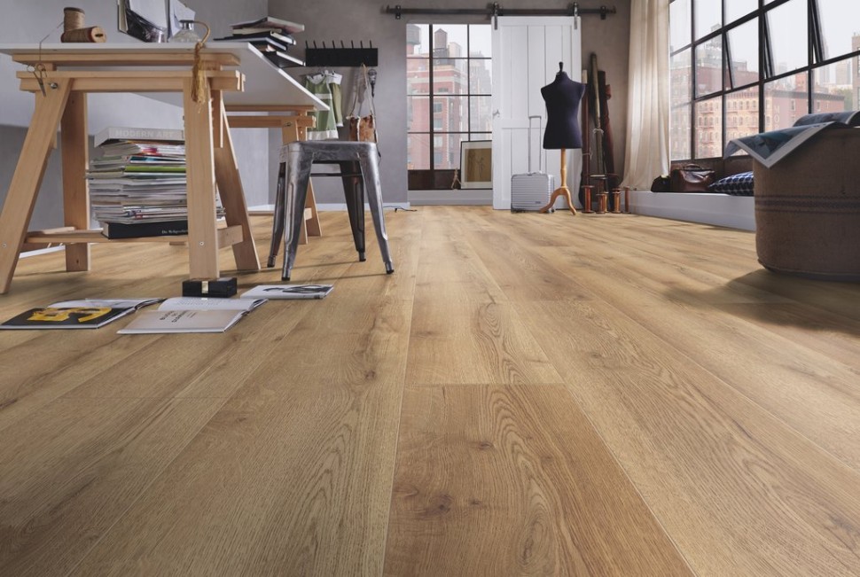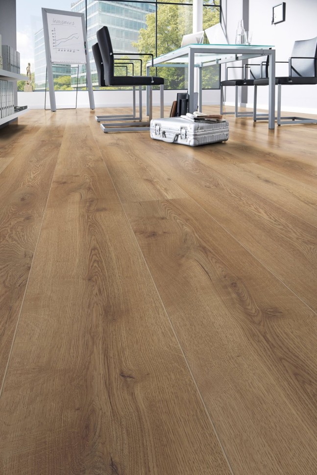 Производство ламината осуществляется в Германии, что уже говорит о высоком качестве продукции. Широкий ламинат 244 миллиметров позволяет создавать эффект единого пространства и визуально увеличивать помещение. А благодаря своей длине в 184,5 сантиметра, ламинат выглядит очень гармонично и стильно.