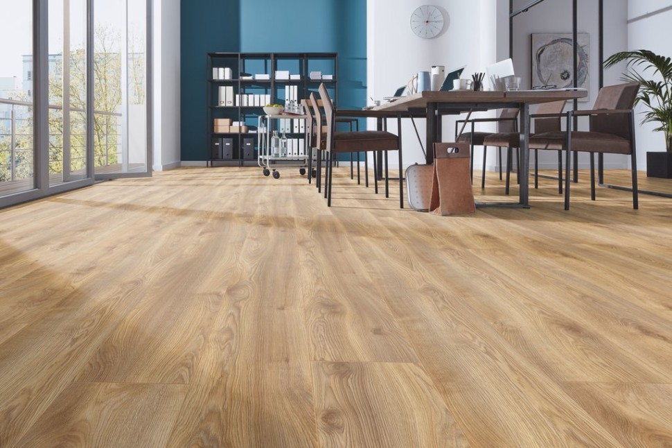 Производство ламината осуществляется в Германии, что уже говорит о высоком качестве продукции. Широкий ламинат 244 миллиметров позволяет создавать эффект единого пространства и визуально увеличивать помещение. А благодаря своей длине в 184,5 сантиметра, ламинат выглядит очень гармонично и стильно.