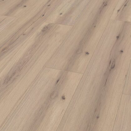 Фаска на краях ламелей придаёт ламинату стильный и современный вид, создавая эффект натурального деревянного пола. А влагостойкость материала гарантирует его надёжность и безопасность при эксплуатации в условиях повышенной влажности, что особенно актуально для кухни и прихожей.