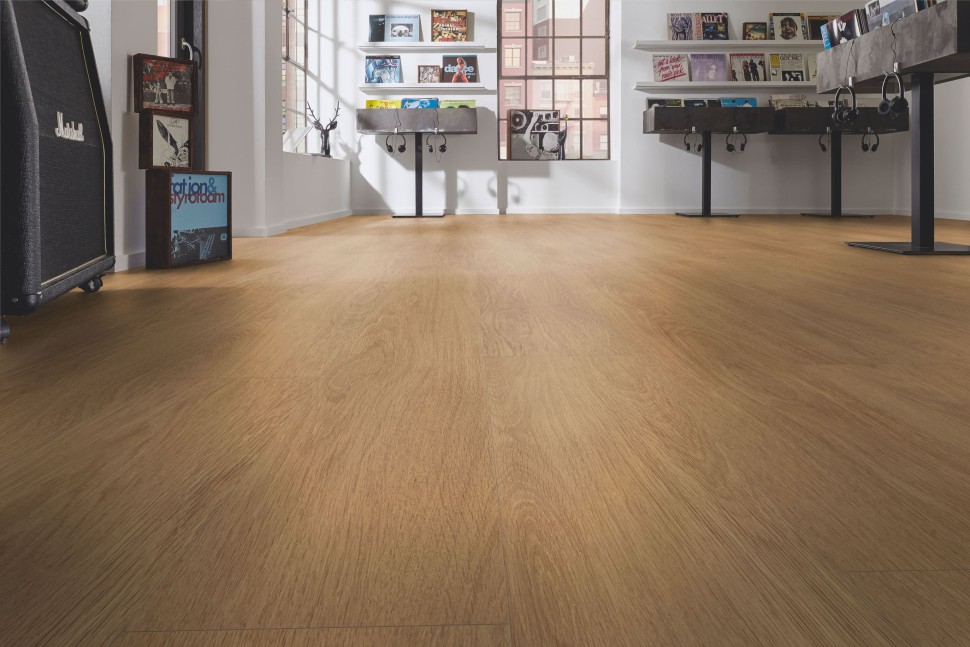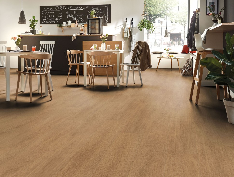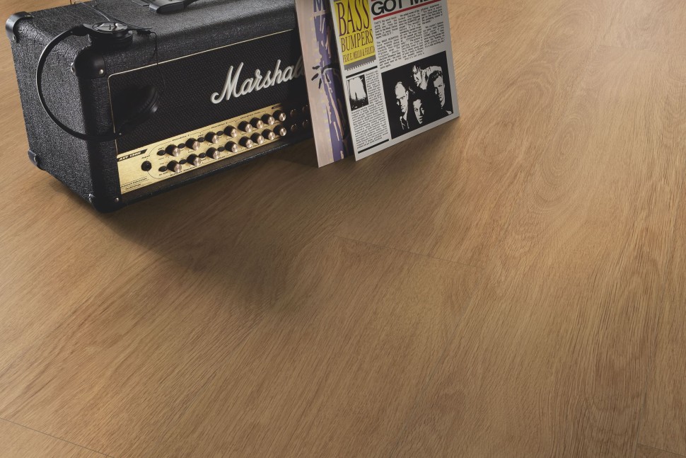 Особым штрихом, придающим уложенному полу реалистичность дорогого паркета, является четырехсторонняя V-образная фаска. Этот элемент декоративно выделяет каждую панель, добавляя покрытию объемности и глубины.