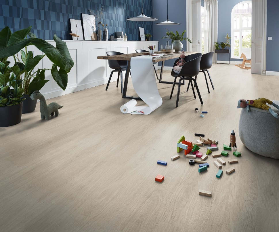 Ламинат Kronotex Mammut Plus D81152 Дуб серый элеганс оправдывает свое название, предлагая исключительную надежность. Сердце этого напольного покрытия – его плотность, достигающая эталонного значения в 1000 килограммов на кубический метр. Такая высокая плотность обеспечивает материалу феноменальную устойчивость к вмятинам, давлению и общему механическому износу.