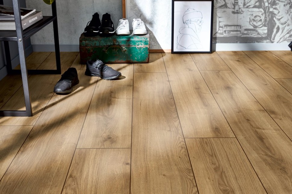 - Толщина 12 мм: этот ламинат имеет толщину 12 мм, что делает его более стабильным и устойчивым к деформации. Более толстая доска обеспечивает лучшее звукопоглощение и сохраняет тепло в помещении.